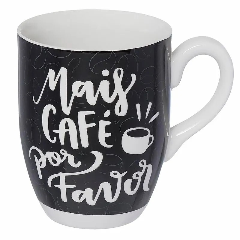 A Caneca Porcelana Mais Café é a peça ideal para os amantes de café. Com capacidade para 350ml, possui estampa que demonstra a paixão pela bebida.